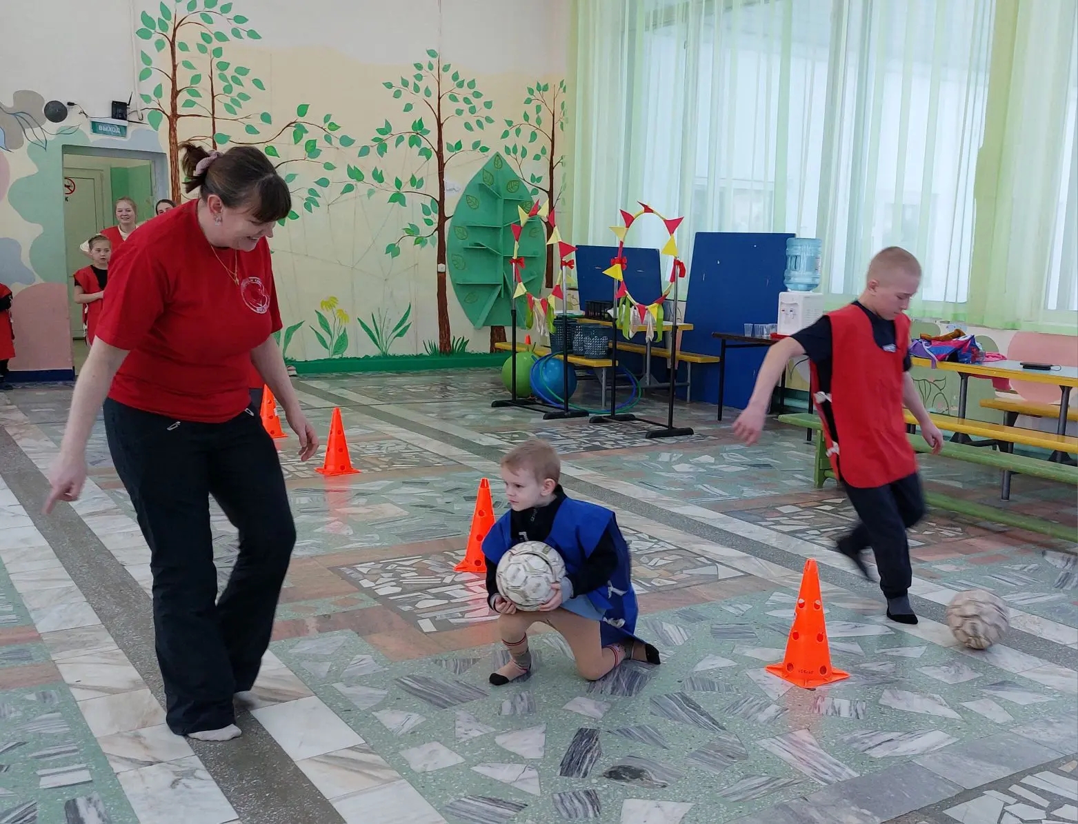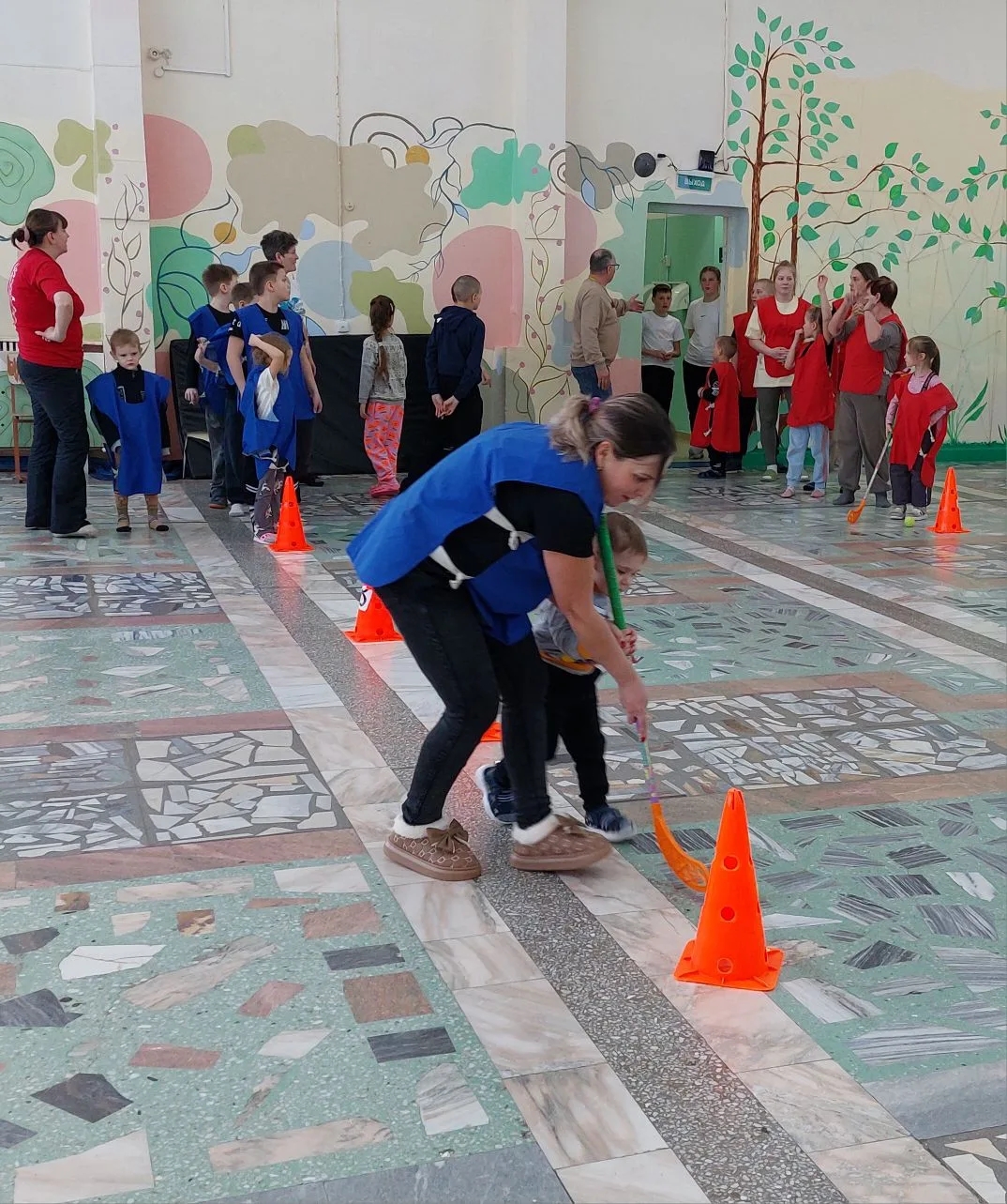 Мамы, папы и дети вместе преодолевали весёлые эстафеты: бегали с мячами, прыгали через препятствия и передавали друг другу эстафету. Команды боролись не только за победу, но и за самые яркие эмоции, на поле царила атмосфера праздника и дружеского соперничества.