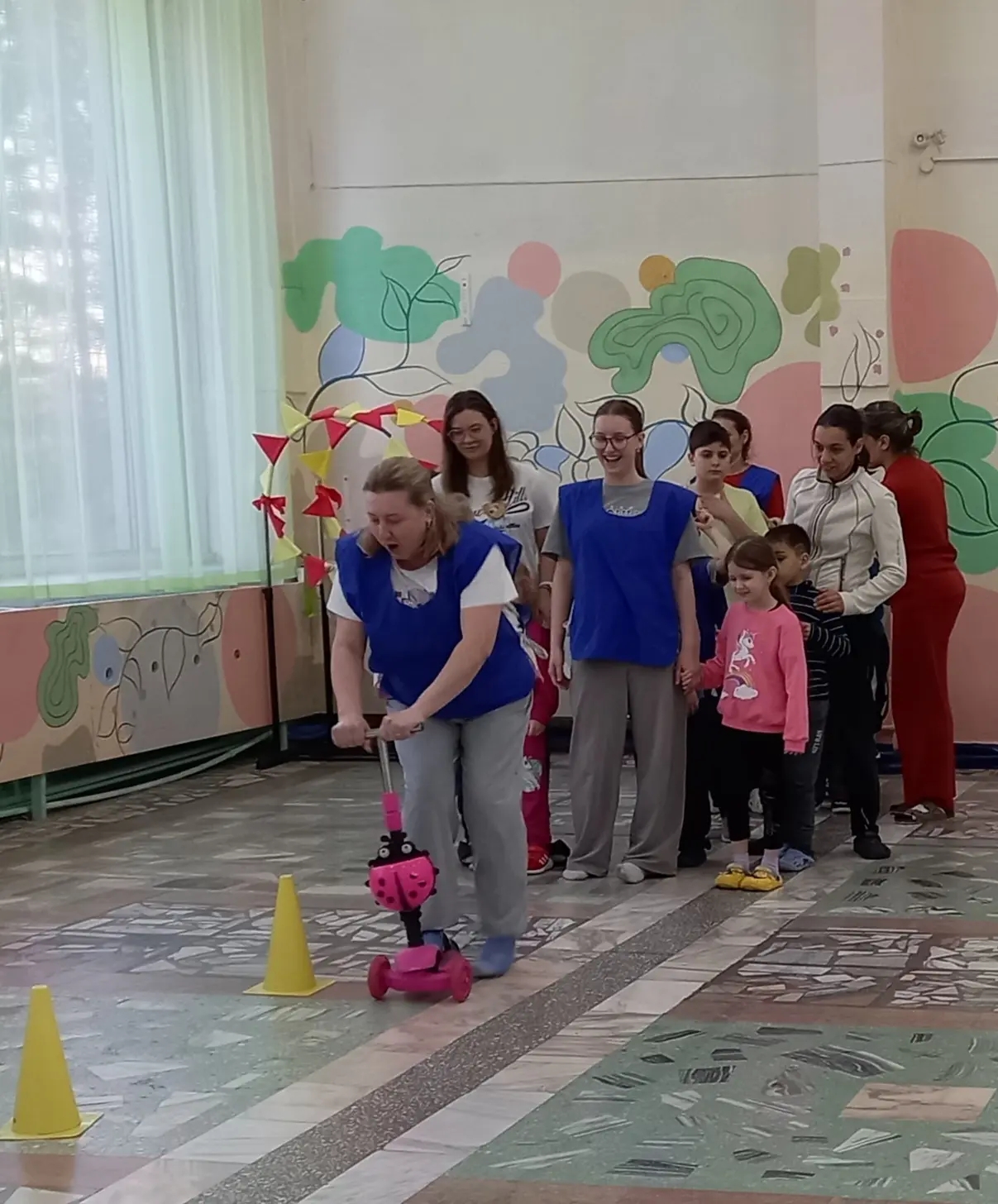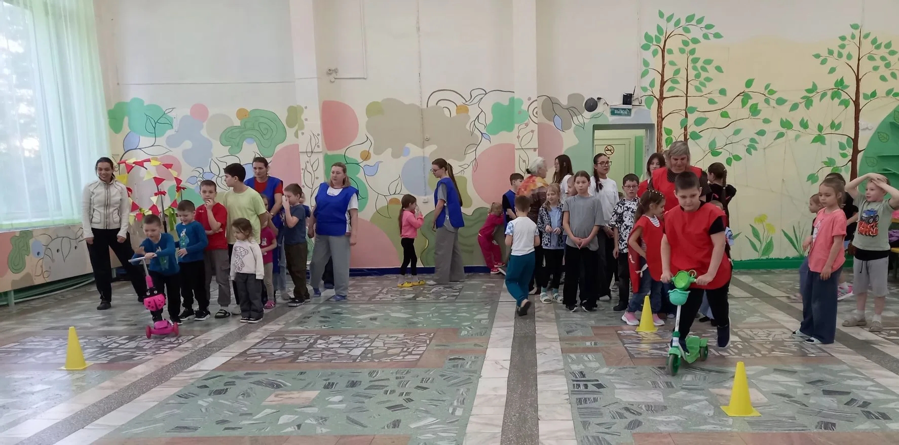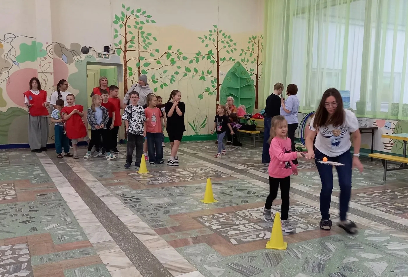 Семьи с детьми собрались, чтобы посоревноваться, повеселиться и зарядиться позитивом. Смех, крики поддержки, топот ног и радостные возгласы победителей наполнили пространство зала.
