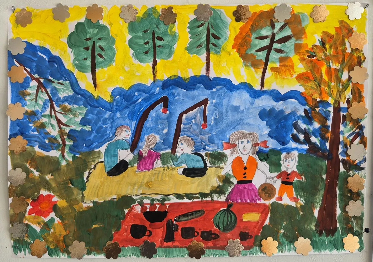 Юные художники от всего сердца поделились своими самыми тёплыми семейными моментами: вот семья празднуют вместе Новый год, вот — все вместе украшают ёлку, а здесь — в выходной день отправились в поход. Кто то нарисовал солнечное плавание на яхте, кто то — отправился на тихую рыбалку, а кто то изобразил, как всей семьёй ходят в зоопарк.